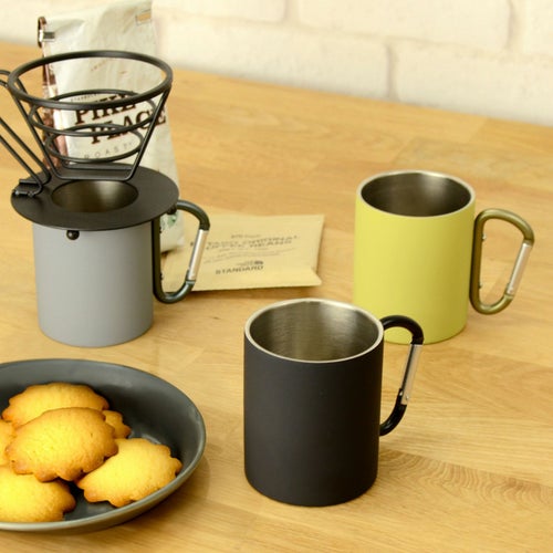 取っ手がカラビナ付きだから、持ち運びしやすい。 350mlの缶がすっぽりはまります。 冷えている飲み物が温まりにくくもなります。 容量:約300ml 【サイズ】 W11xD7.5xH9cm 【本体重量】 115g 【素材】 (本体)ステンレススチール (カラビナ)アルミニウム 【原産国】 中国