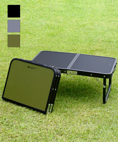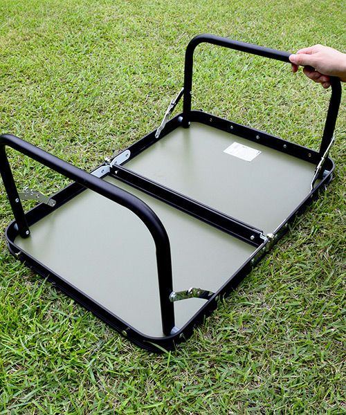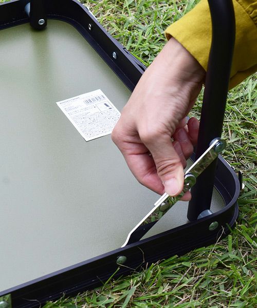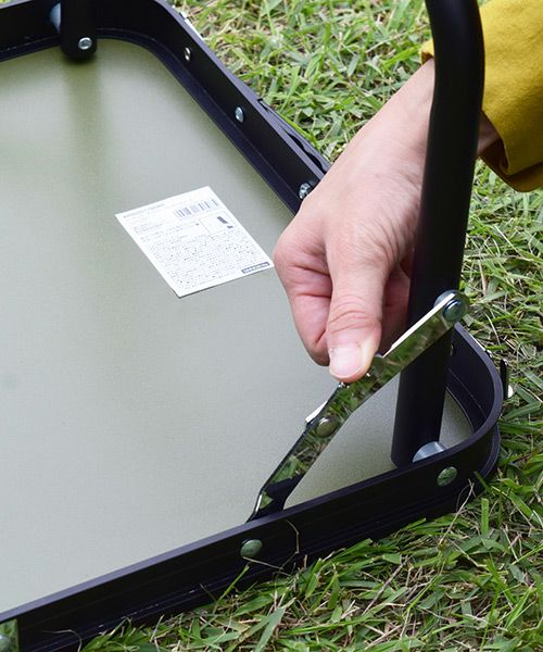 折りたたみ式のコンパクトテーブル。 ハンドル付きで持ち運びできるので、気軽なアウトドアレジャーのお供に! 地面との距離が近いため、タープやテント内で使用しても空間が広く感じられます。 持ち運びやすいので、ソロキャンプや少人数のキャンプにもおすすめです。 本体重量:約2kg 耐荷重:約15kg