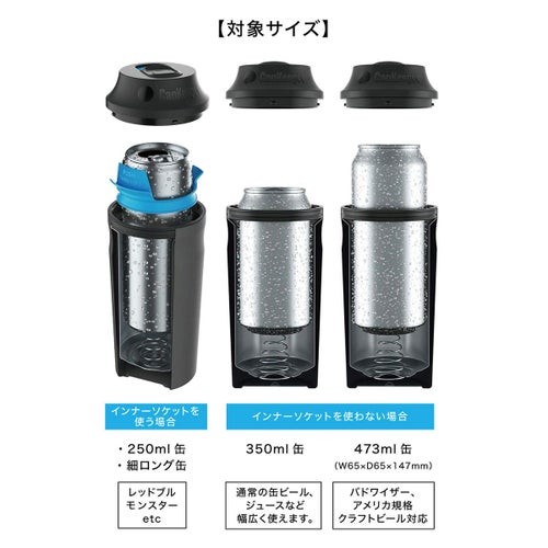 内部に搭載されているバネにより、250ml、350ml、473ml の缶まで、