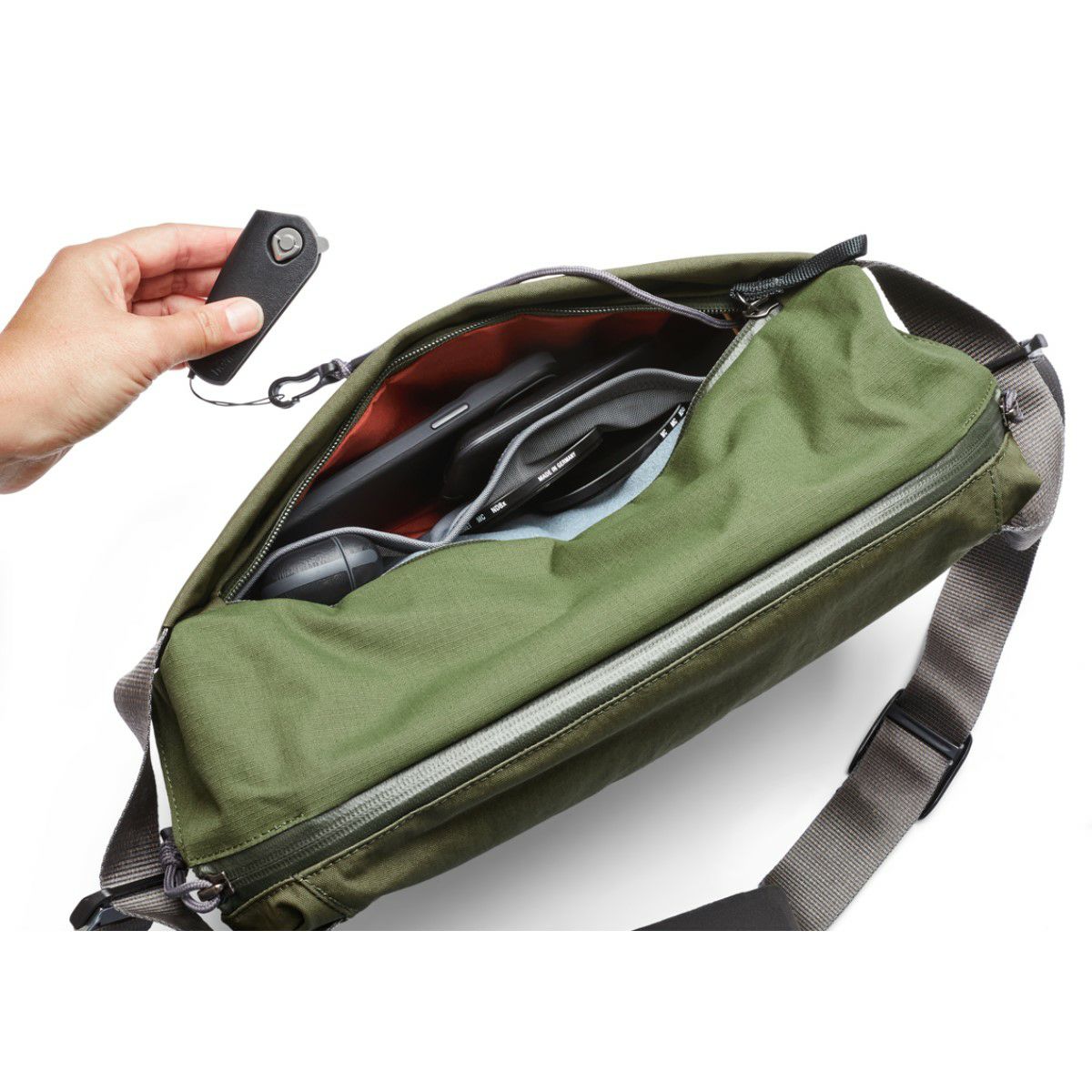 片手でアクセスできる使い勝手抜群のスリムなベルトバッグ。撮影はもちろん、毎日のお出かけも軽快に楽しめます。