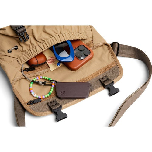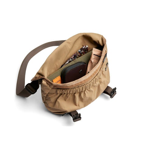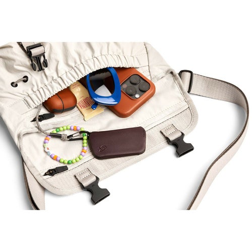 体の高い位置にぴったり固定したり、ゆったり斜め掛けにしたり、シーンに合わせて自由に持ち方を調整できる軽量ショルダーバッグです。