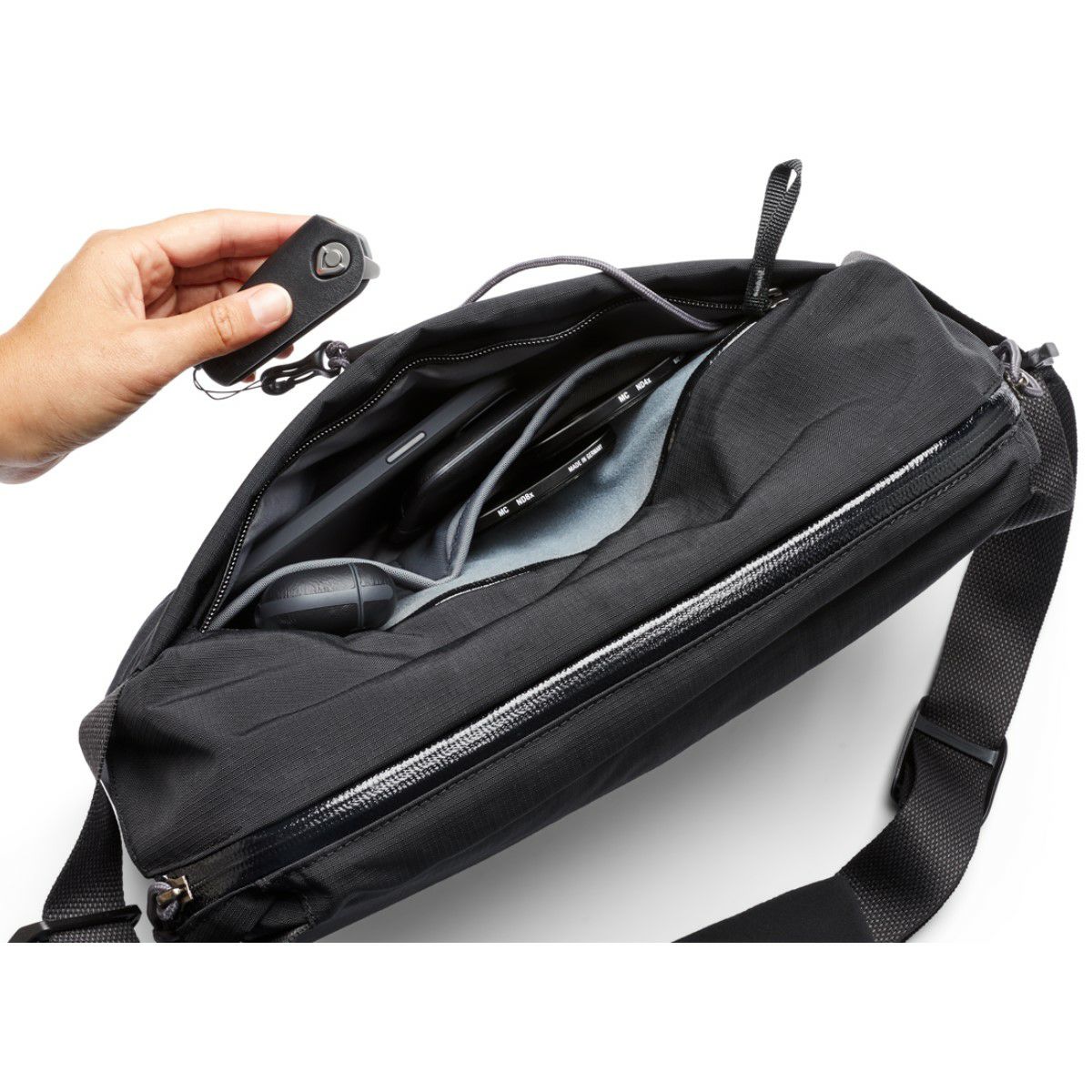 片手でアクセスできる使い勝手抜群のスリムなベルトバッグ。撮影はもちろん、毎日のお出かけも軽快に楽しめます。
