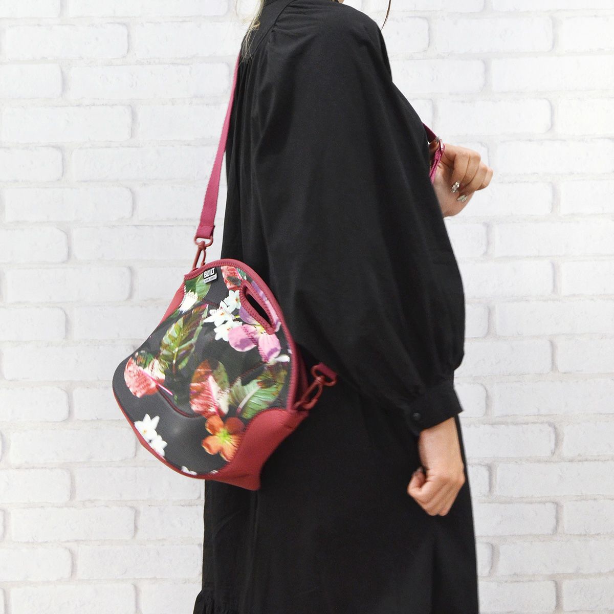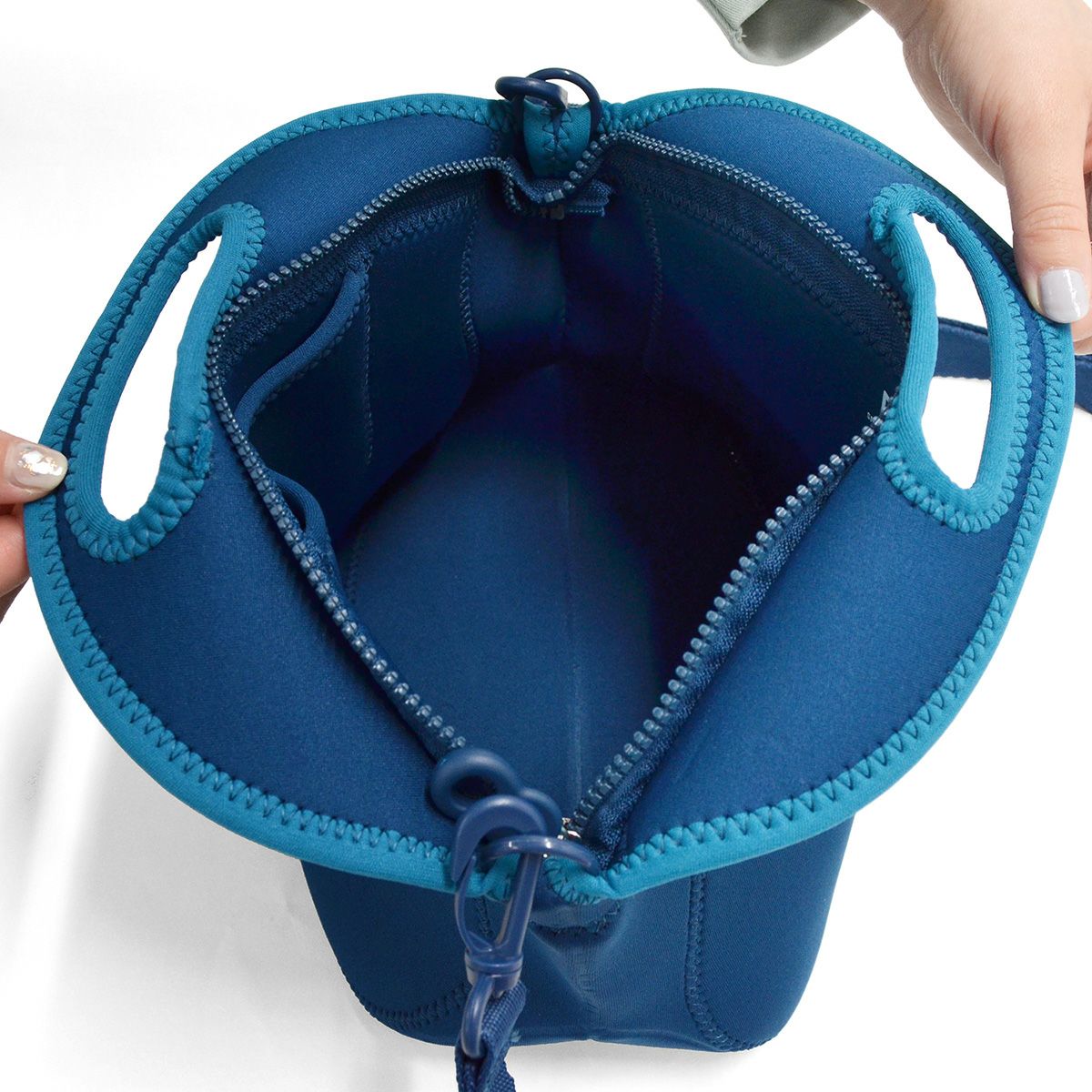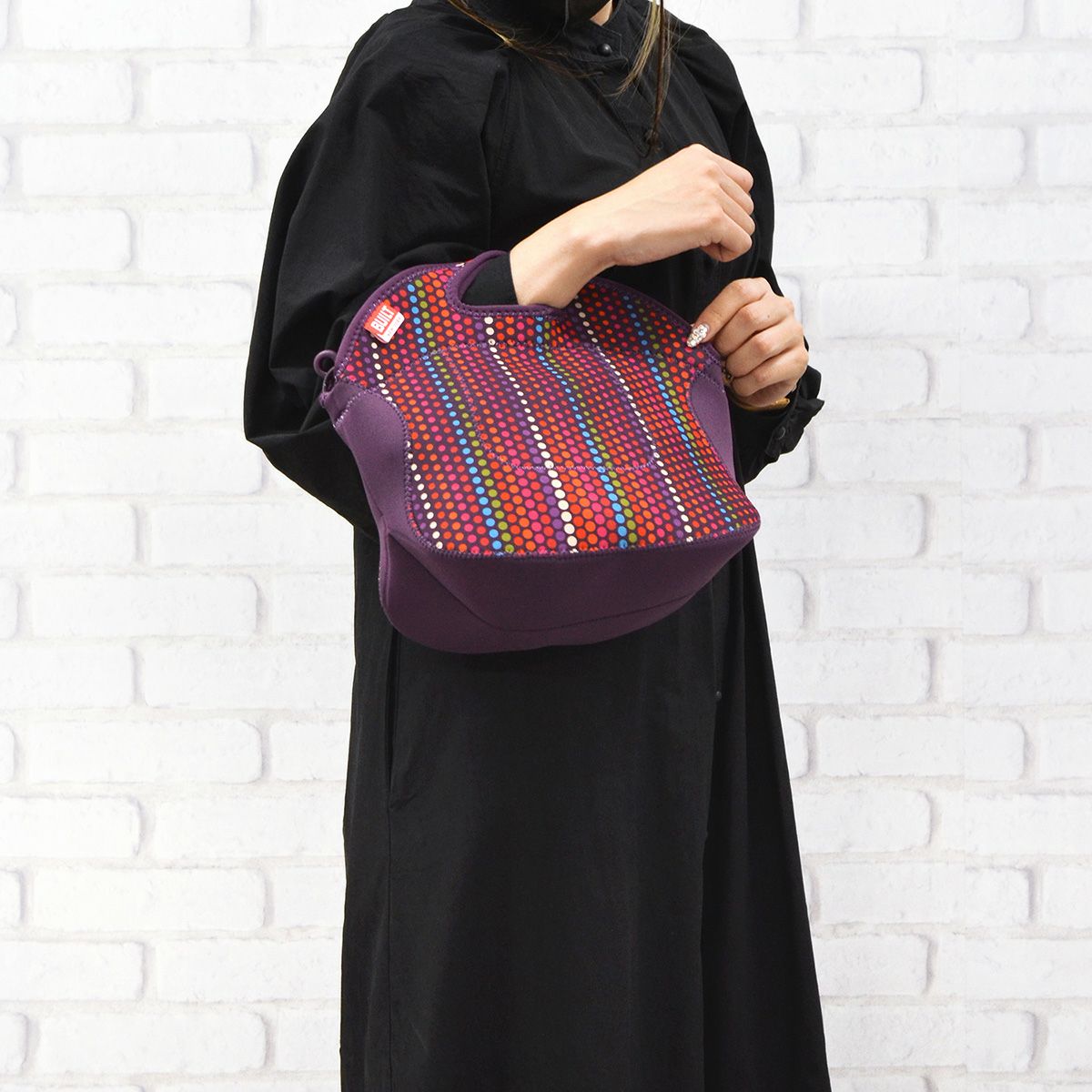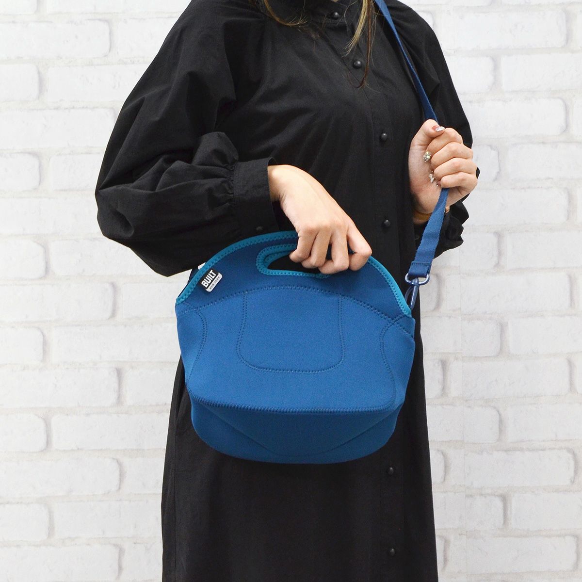 ウェットスーツに使用されるネオプレン素材を使用し、丈夫で汚れがつきにくく、洗えます。 ● 取り外し可能なショルダーストラップ。トートとショルダーをシーンで使い分けることができるのが人気の理由! ● ちょうどいいサイズ感。ちょっとのお出かけやお買い物、ドライブにピッタリ。
