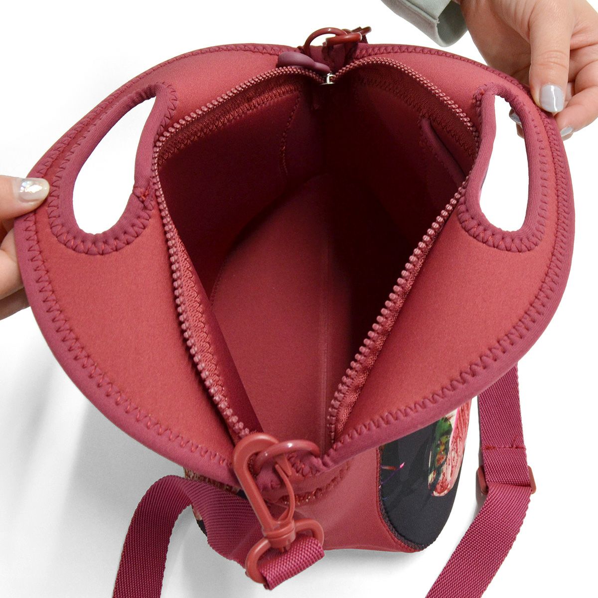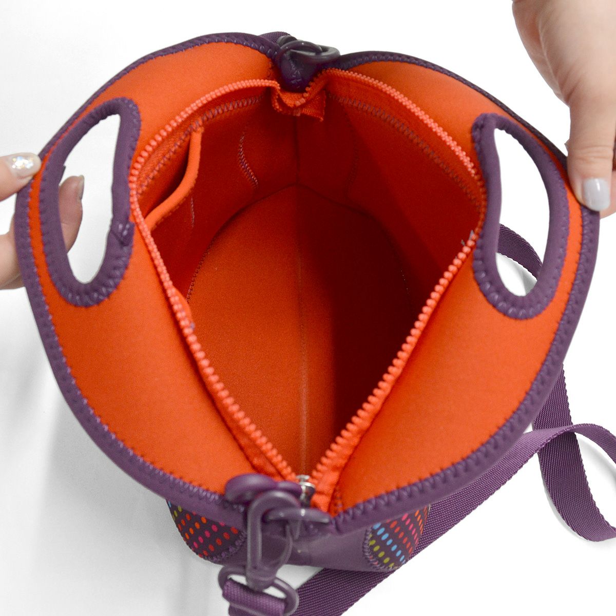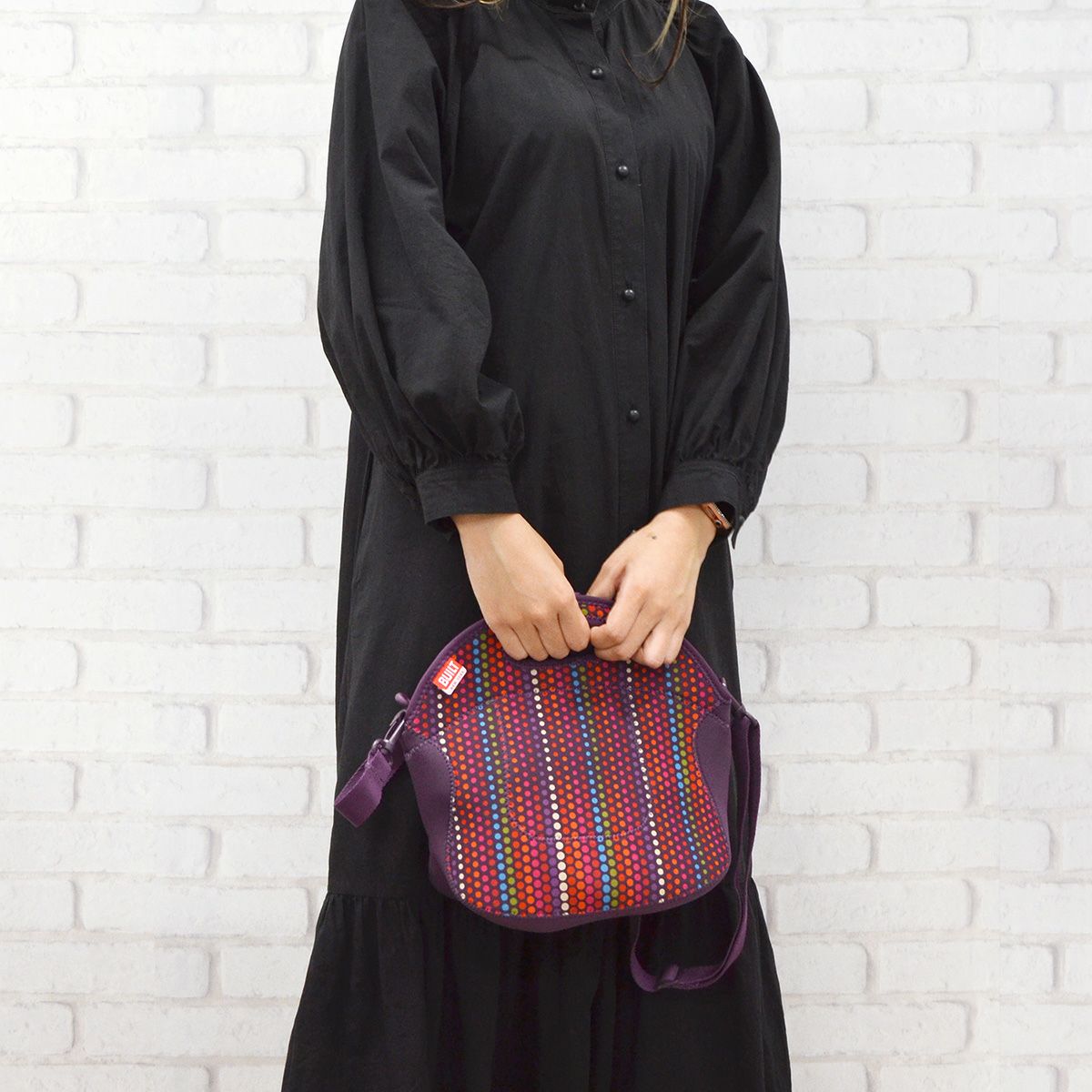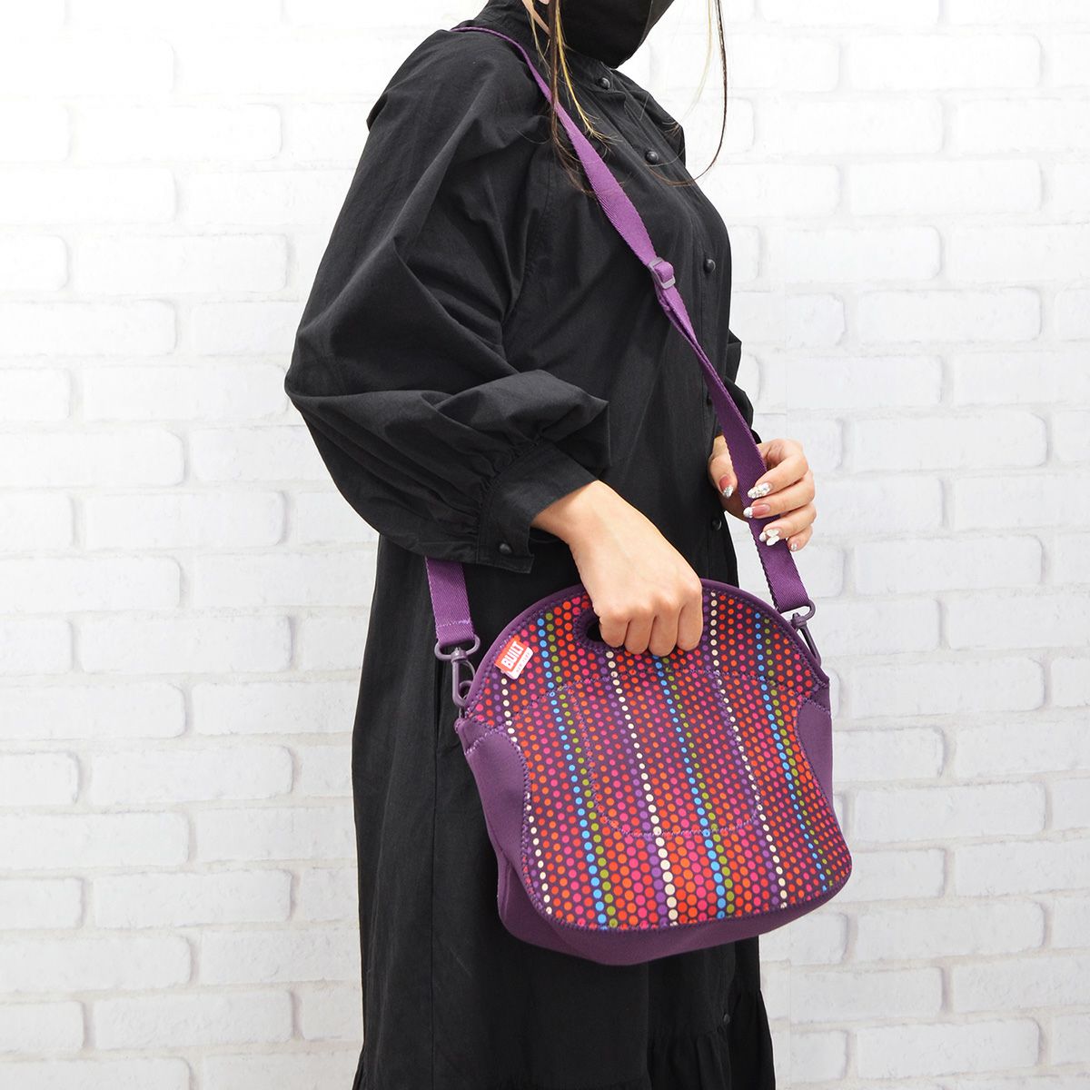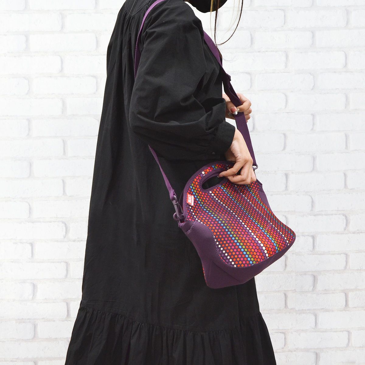 ウェットスーツに使用されるネオプレン素材を使用し、丈夫で汚れがつきにくく、洗えます。 ● 取り外し可能なショルダーストラップ。トートとショルダーをシーンで使い分けることができるのが人気の理由! ● ちょうどいいサイズ感。ちょっとのお出かけやお買い物、ドライブにピッタリ。