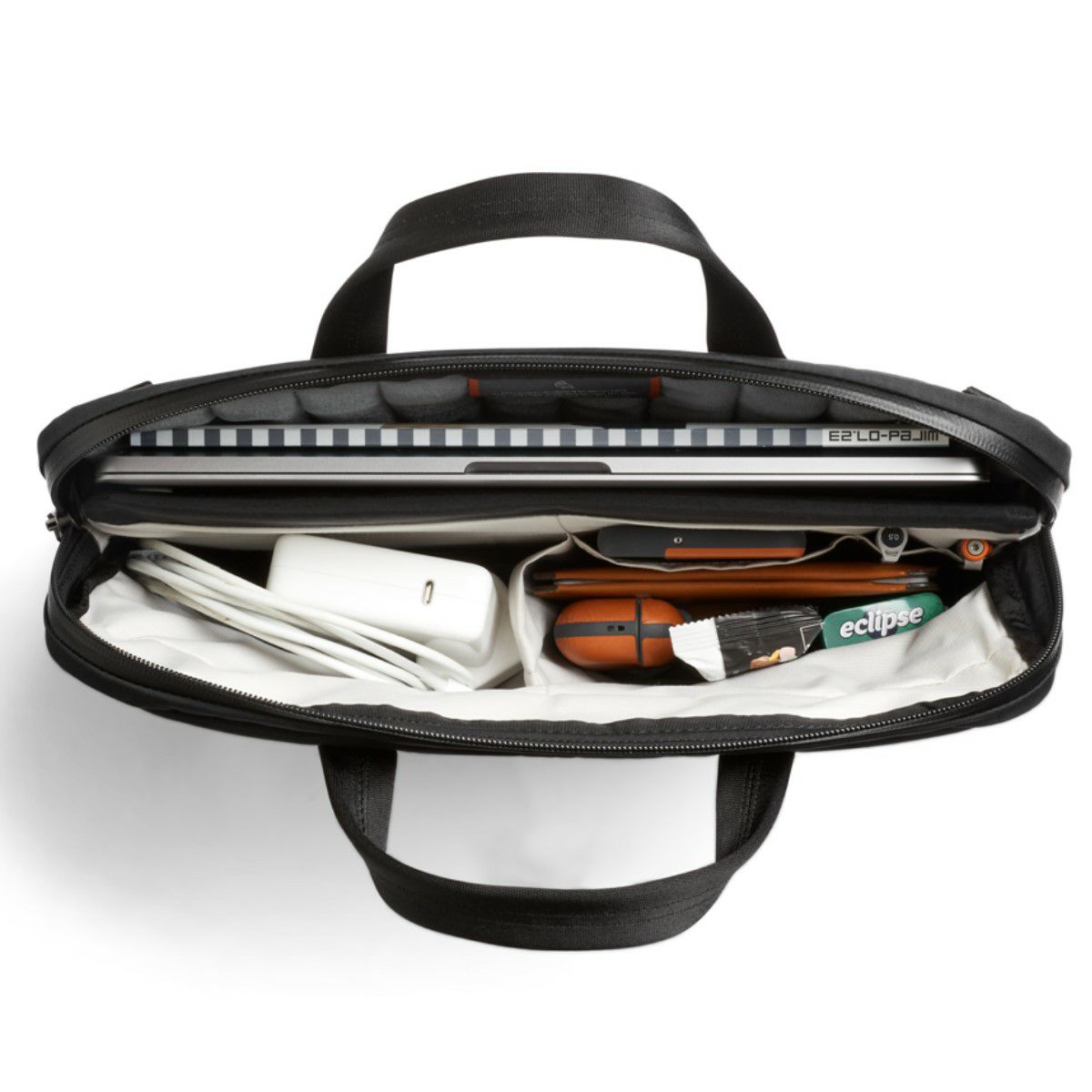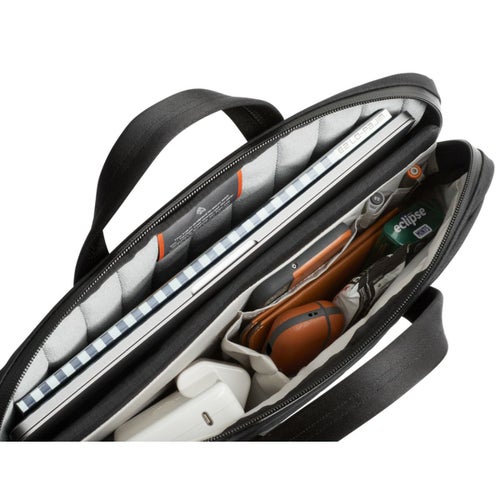普段使いのバッグに、うれしいプラスαの機能を備えたモダンなPCバッグ。薄型ながらも、さまざまな仕事道具をすっきり収納できます。