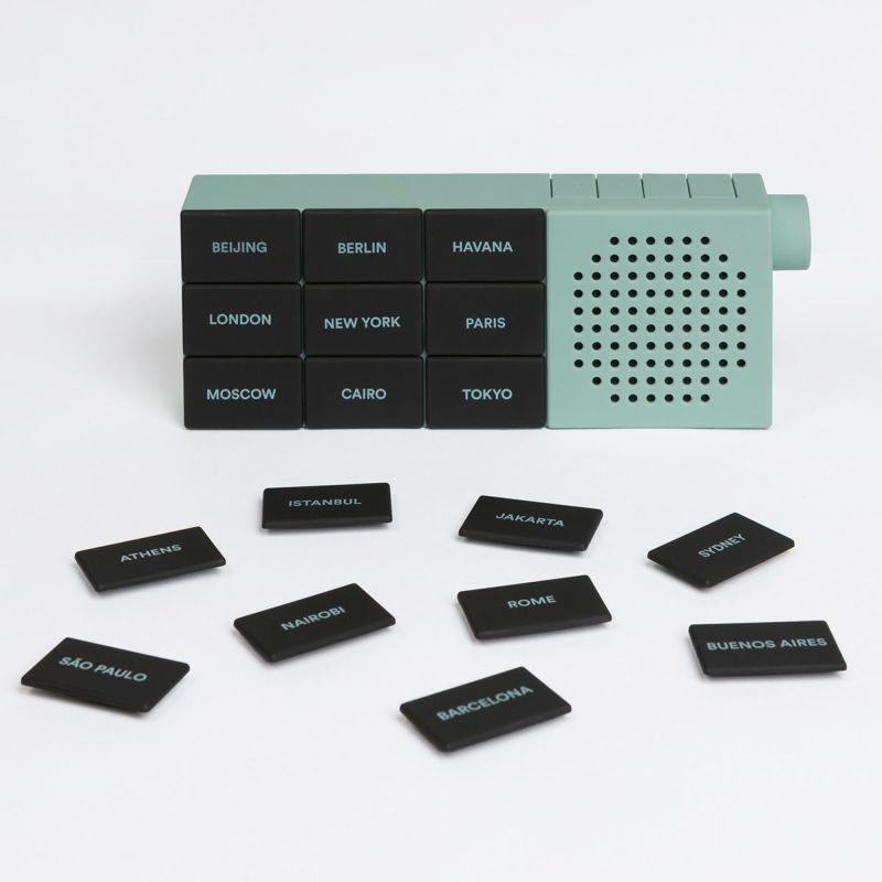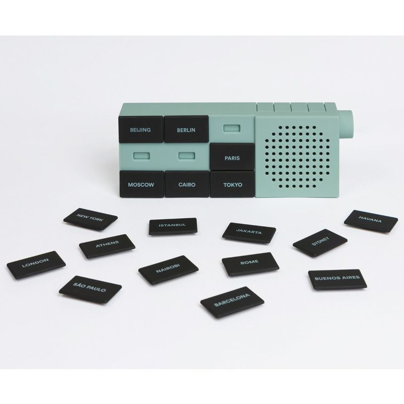 スマートフォンの専用アプリをダウンロードし、Bluetooth と接続。海外のラジオ番組を良い音質でお楽しみいただけます。18 の都市名が書かれたボタンパネルは、マグネットなので簡単に取り外しができ、自分好みに都市をセレクト・カスタマイズできます。
