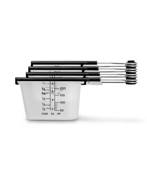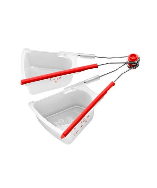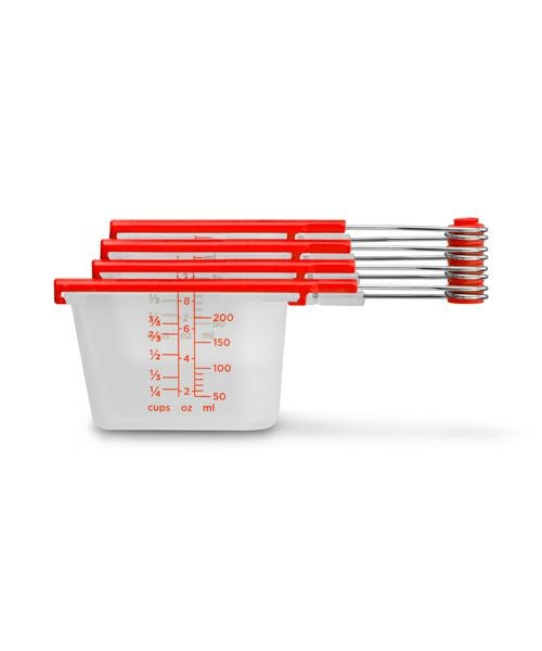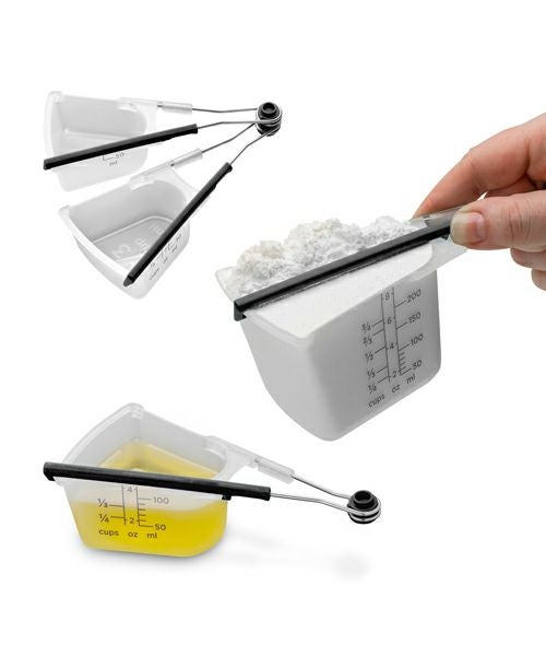 オーストラリア・ドリームファームの片手ですり切り可能な計量カップ4種セットです。1つ1つのカップに大きな文字で読みやすい分量表示が示されています。ml oz cup の3通りのメモリ表記で海外のレシピにも対応。さらに、重ねて収納することができるので省スペースでのコンパクト収納が可能です。必要なサイズのみ取り外して、個別に使うことができます。