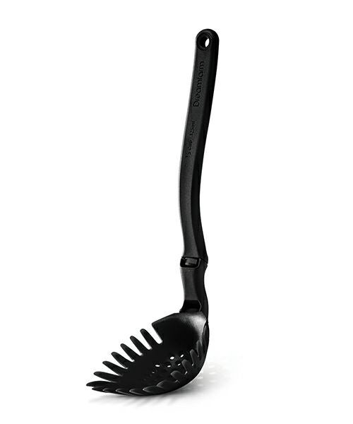 ハンドル部分をねじることで穴あきおたまに穴あき計量スプーンにもなる便利グッズ。125mlを測ることができます。麺や豆など用途に合わせて活躍します。 ■耐熱温度:250℃