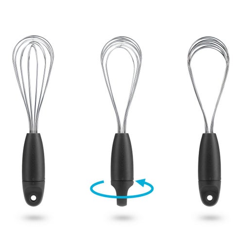 Dreamfarm mini Flisk ウィスクは平らに折りたたむことができるので、引き出しの中で他の道具と絡まることなく、省スペースで収納することができます。