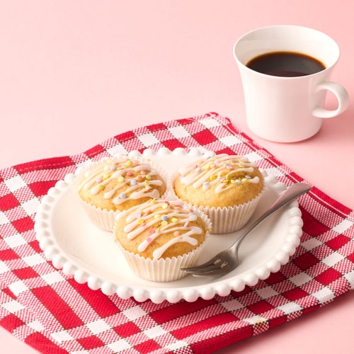 アイシングパウダーをお湯で溶かしてマフィンに塗り、取り分けたスプリンクルを振りかけて固まったら完成です!