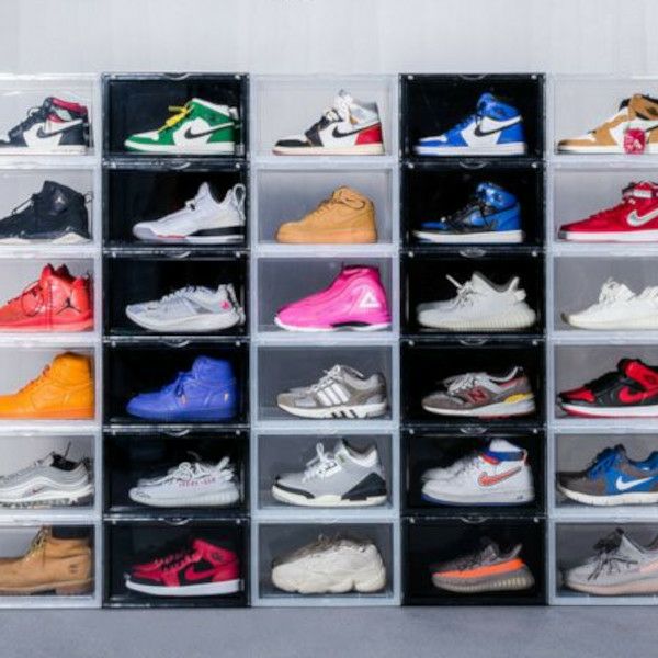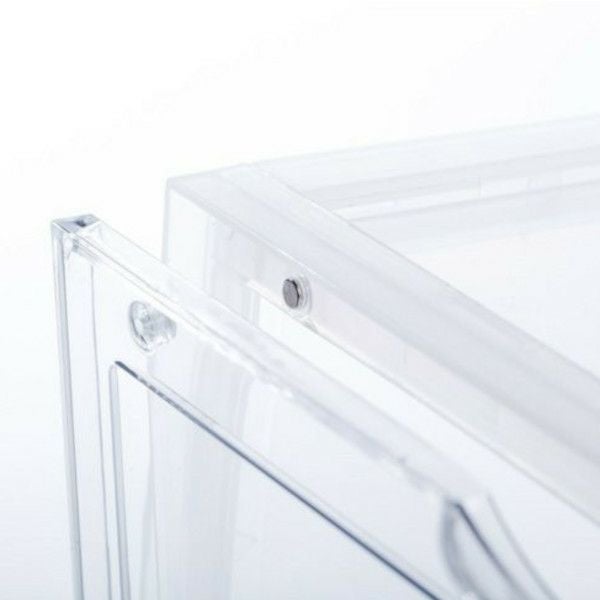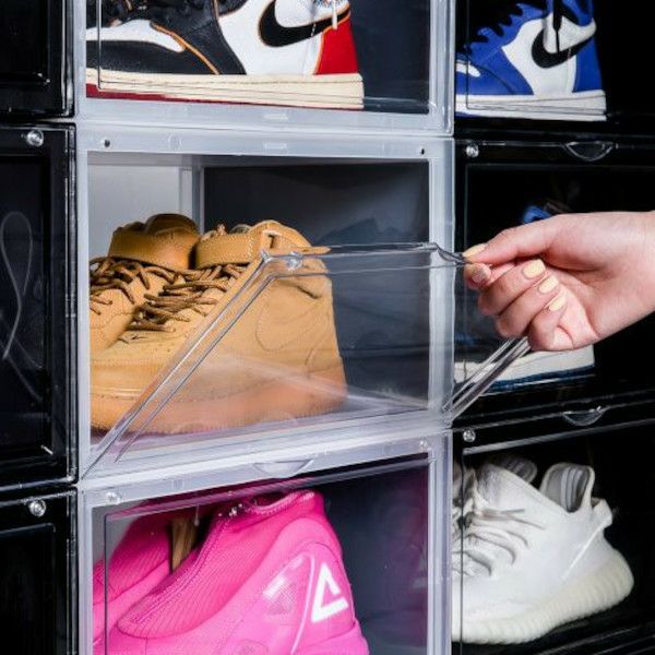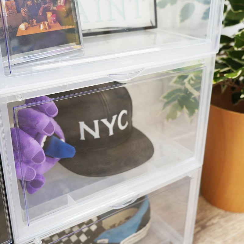 組み立て式ディスプレイボックス。 お気に入りを集めたコレクションケースに。 グッズを飾ってディスプレイボックスに。 中身が見えやすい透明度の高いフタはマグネット付きでパチッと閉じられます。 靴対応サイズ:31cmまで対応(靴の形状により 入らない場合があります。)