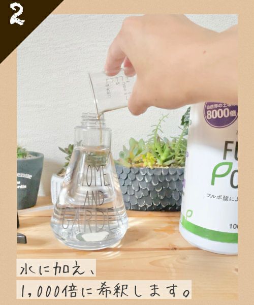 本商品は、本来含まれるフルボ酸の約8,000倍の濃度を凝縮した、今注目の【植物活性剤】です。