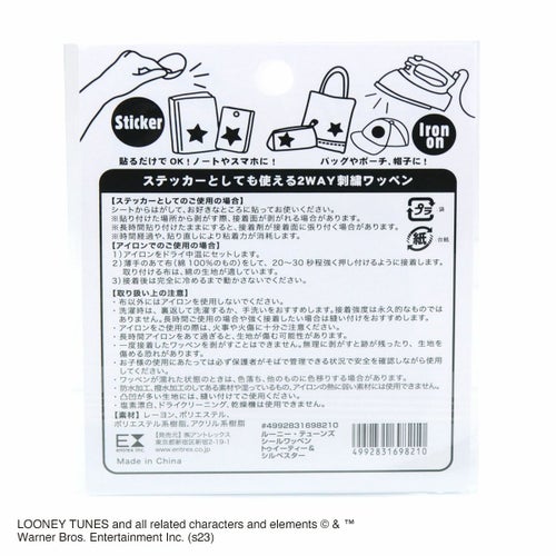 アニメ「ルーニー・テューンズ」に登場する大人気キャラクター「トゥイ―ティー」とシルベスター。 2人はいつも終わりなき戦いを続けています...! 好きなところにペタッと貼って気軽に楽しめるシールみたいな ワッペンが登場! アイロンをかければ布にしっかりくっつく2WAY仕様♪ 対象年齢6歳以上