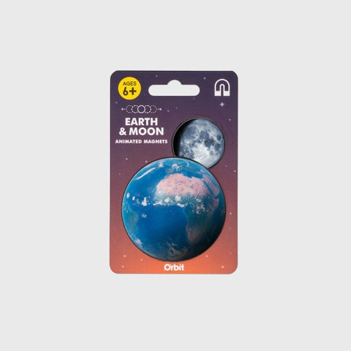 地球と月のフラットなマグネットは、傾けると絵柄が どんどん変わっていきます。自転する地球と、 満ち欠けする月は、ずっと眺めたくなっちゃう!
