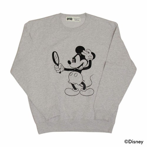 BYRD限定の、手鏡を持ちスタイリングをする「ミッキー」のスペシャルなグラフィックをフロントに落とし込んだトレーナー。