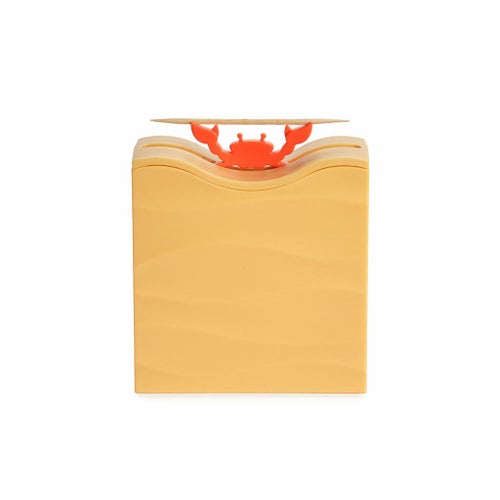 綺麗な砂浜のようなBOXを持ち上げておろすと、かわいいカニが爪楊枝をもってきてくれます。 1本ずつとれるので衛生的。毎日の食卓を楽しくしてくれるアイテムです。