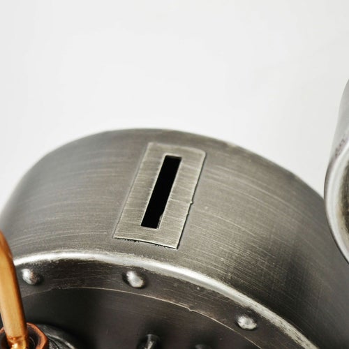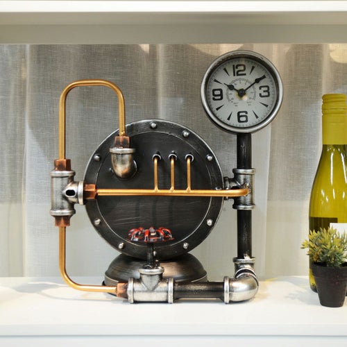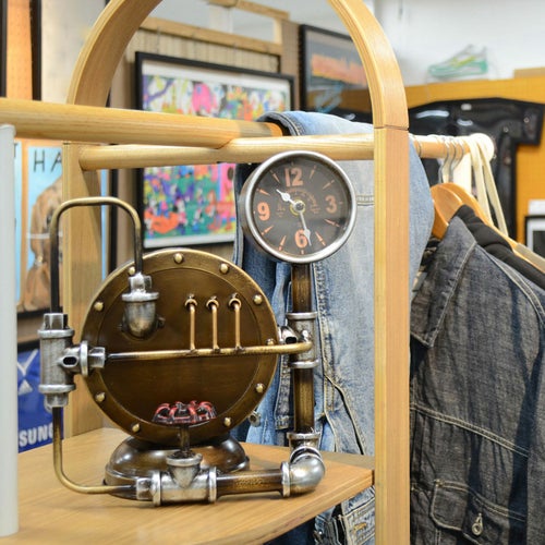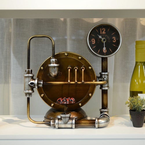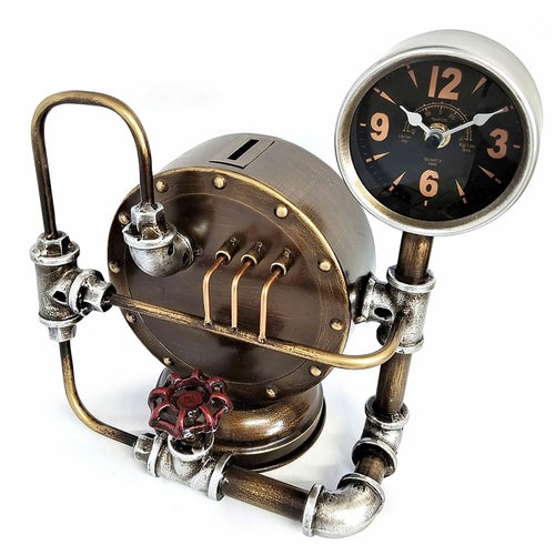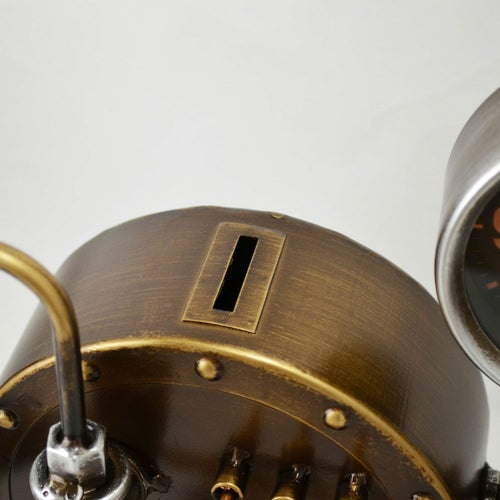 スチームパンク調のレトロで存在感のあるスタンドクロック。貯金箱付きでレトロな雰囲気を楽しめます。 【サイズ】 W28xD16xH28.5cm 【本体重量】 1.5kg 【原産国】 中国