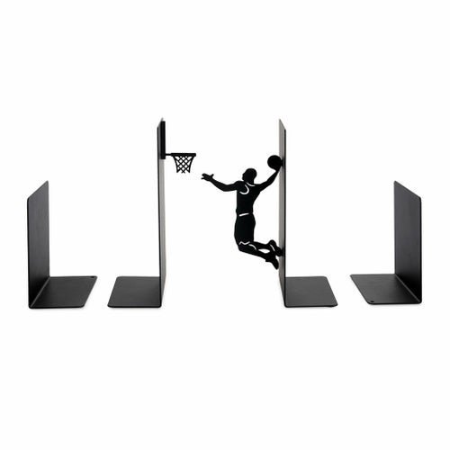 物語から飛び出してきたようなシルエットのブックエンド。 バスケットボールのシュートシーンを切り取ったような躍動感あるデザイン。 インテリアのワンポイントとしてデスク周りを彩ります。