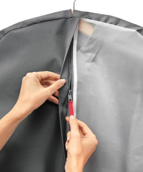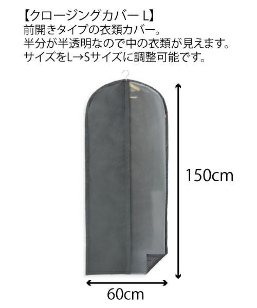 半分が半透明なので中の衣類が見える衣類カバーです。サイズをL→Sサイズに調整可能です。マチ付きで、衣服を入れやすい。通気性がよく、衣類を守ります。