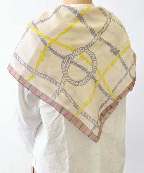 マリン感あふれるロープの柄のスカーフです。薄手で小さめサイズなのでコンパクトに使えます。クラシックなデザインながらグリデカナらしくポップな印象に仕上げました。(大阪)
