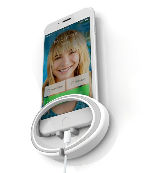 背面の両面テープでご使用になる場所に貼り付け、スマートフォンを置いてください。下から充電コード入れることで、充電しながらスマートフォンをご利用いただけます。製品を使用中に通話、動画などをご覧いただくと10db音が大きくなります。