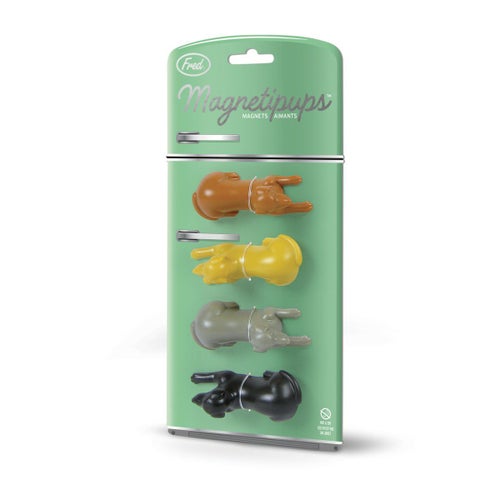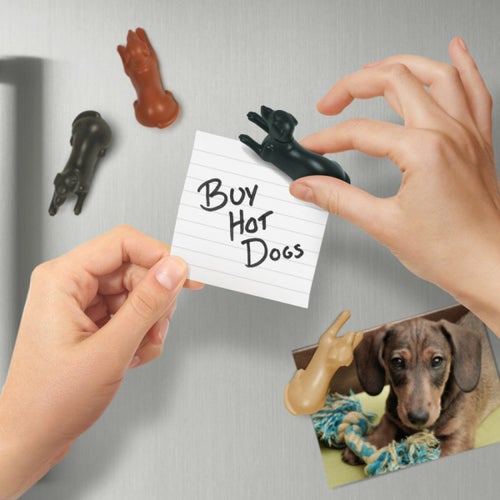 色違いの4匹の犬がメモで遊んでいるように貼ることができるカワイイマグネットです。 手とお尻に磁石がはいっているので、クリップのようにもお使いいただけます。