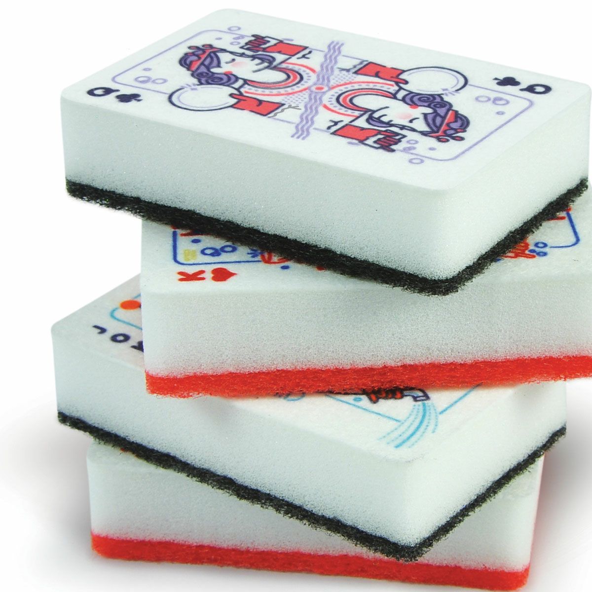 トランプでお皿洗い!? 思わずシャッフルしたくなっちゃうトランプ型のスポンジセット。 洗うものによって両面使い分けましょう。 ちょっとしたギフトにもおすすめです。