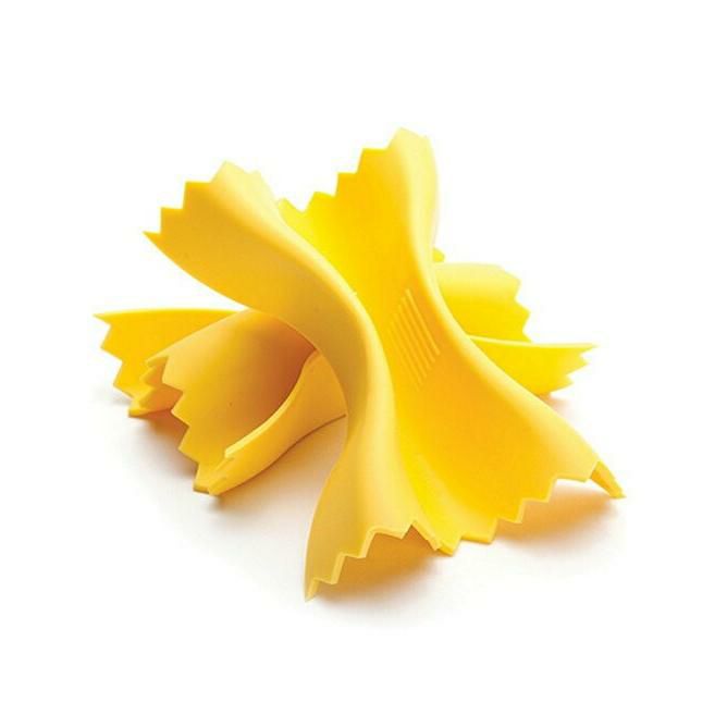 巨大なパスタで鍋をキャッチ! まるで本物のパスタみたいな質感がリアルな鍋つかみです。 リボン型でとってもキュート!シリコン製なのですぐに洗えます。 耐熱温度:230℃