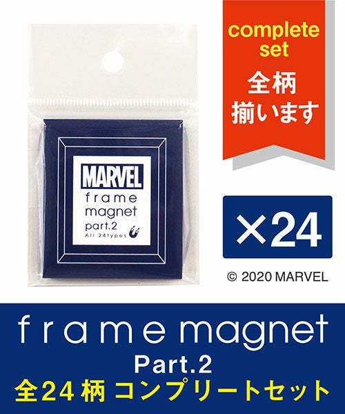 大人気フレームマグネットのコンプリートセットが登場!! 手のひらサイズのフレームに「MARVEL」の美麗なアートがぎゅっと詰まったマグネットの第二弾! 並べるとまるで小さなミュージアムみたい!コレクター心をくすぐるアイテムです。 シークレット2種を含む全24種類が全てこちらで揃います! 色んな所に貼って、お家を小さなミュージアムにしちゃおう♪