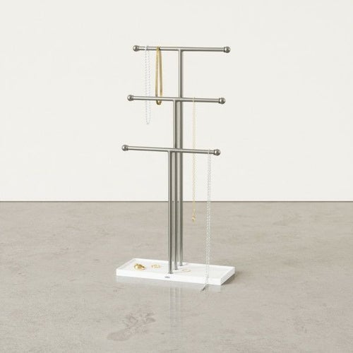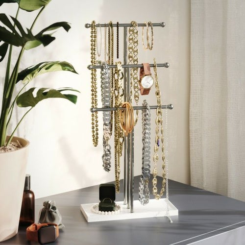 TRIGEMの3段のジュエリースタンドでは、3本のバーが十分な収納スペースを提供しています。