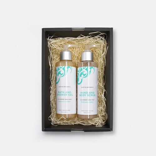 アロエベラ葉エキス、オリーブ油、マカデミアナッツ油を配合した2種類のボディケアセット。 バス&シャワージェルはジェルの厚みで肌摩擦を軽減。 泡立ちは控えめで、お肌の乾燥が気になる方におすすめのジェル状石鹸&バブルバス(泡風呂)の入浴剤。 ハンド&ボディスクラブはアプリコットの種を使用したやさしいスクラブ。 泡立ちも良いのでハンドやボディソープとしてもお使い頂けて、しっとりさらさらしたクリアなお肌に。 古い角質をとり、すべすべした仕上がりに。