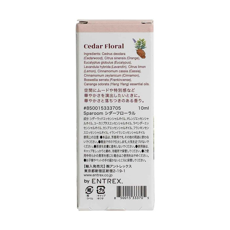 すべて世界中から厳選された100% ピュア&ナチュラルを使用し、独立した第三者機関の認証を受けております。 【香り説明】 ・シダーフローラル ウッディーで甘いシトラス系の フローラルな香りはあなたの心を 落ち着かせリラックスした気分を お届けします。 容量:10ml