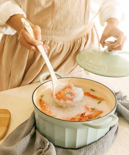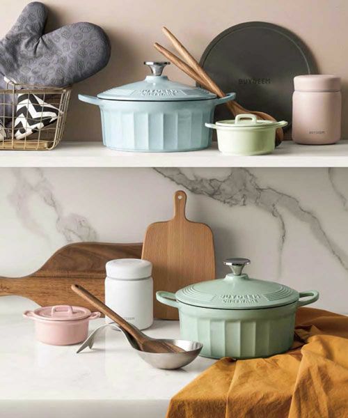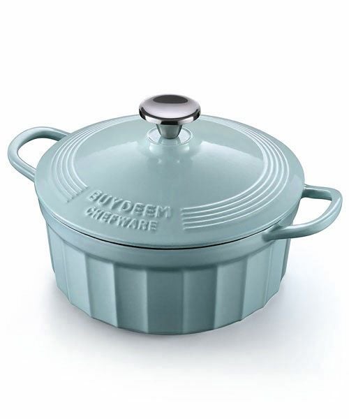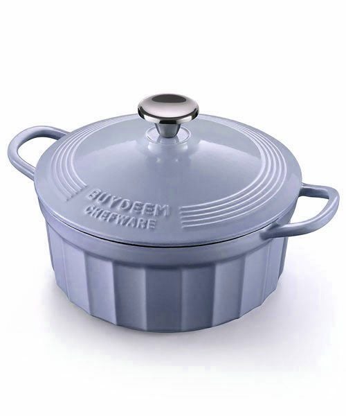 美しさと機能性が1つになったデザイン。鋳鉄をホウロウでコーティングした鍋は熱を均等に分割し、蒸し煮や煮込みは芯までふっくら仕上がります。