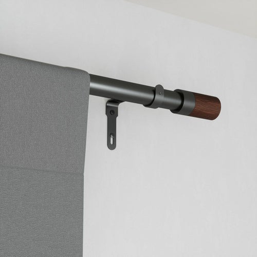 洗練されたタッチのモダンなカーテンロッドであるブロックは、直径2.5 cmの調整可能なカーテンロッドで、ガンメタル仕上げと木製の円筒形フィニアルを備えています。