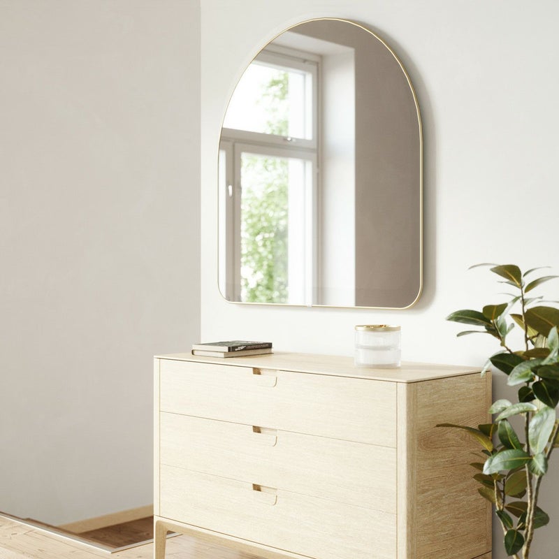 フーバ アーチド ミラーは、柔らかな曲線と薄いメタリック仕上げの縁が特徴です。