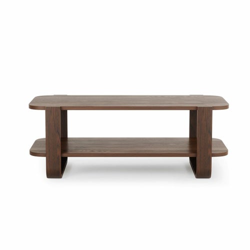 柔らかな木のカーブした脚と2つのオープン棚を備えたベルウッドは、リビングルーム、ベッドルーム、玄関に暖かく風通しの良い雰囲気をもたらします。
