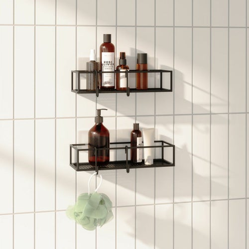 2つのシャワーキャディのセット:コーナーのシャワーまたはバススペースにきちんと収まるように設計されたこれらの2つのキャディーのセットは、必需品のための収納を追加します。キャディあたり耐荷重4.5 kg