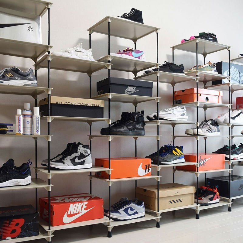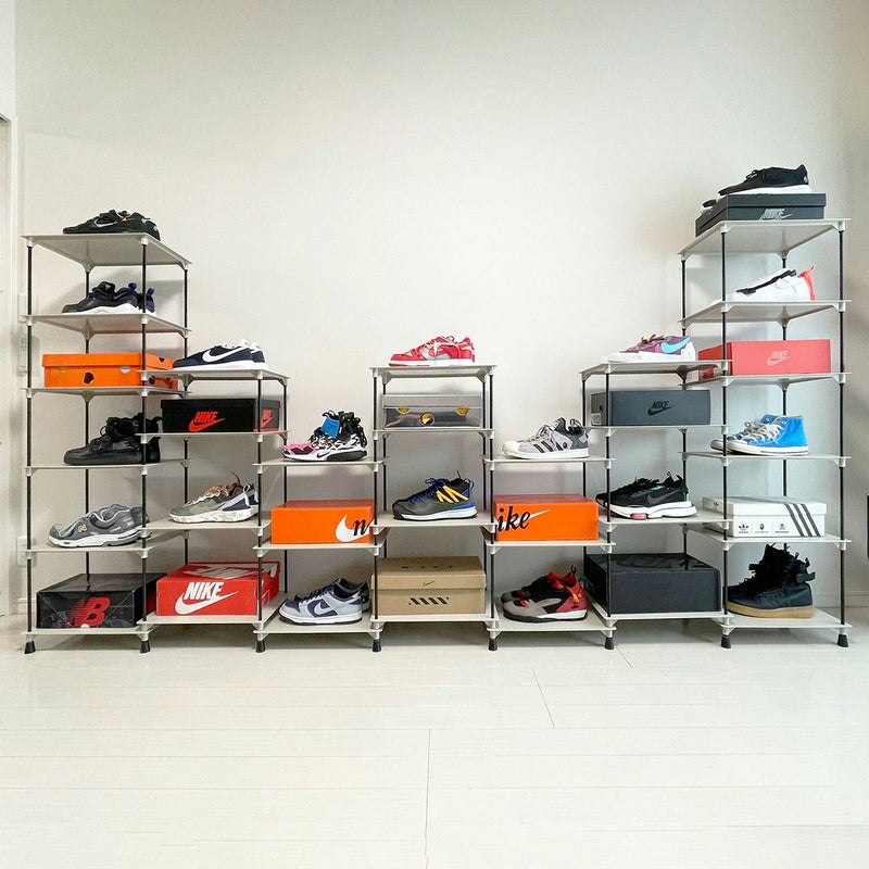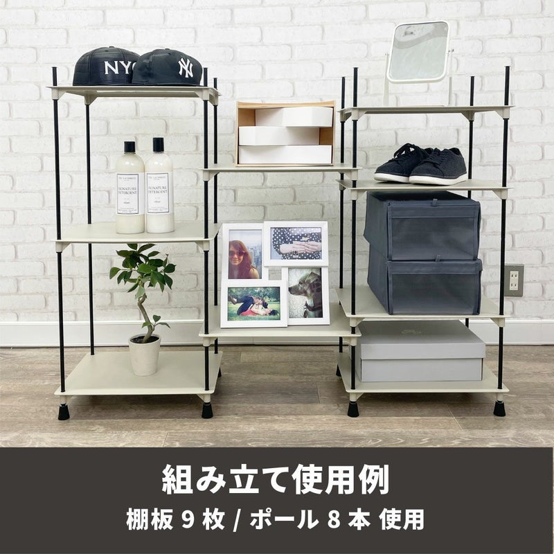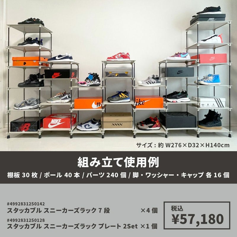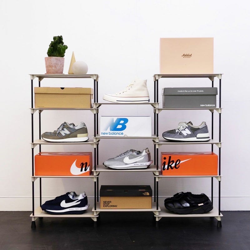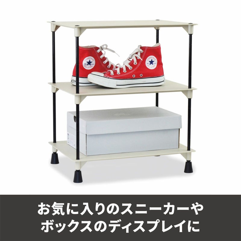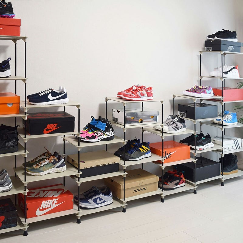 横にも縦にも組み合わせ方が自由自在なディスプレイラック。 棚のサイズ約40×30cmで高さは収納するものによって調整できます。 スニーカーだけでなく、スニーカーボックスも合わせてディスプレイできます。 また、お気に入りの小物や観葉植物もディスプレイでき、幅広いシーンでご使用いただけます。 別売のポールやプレートと組み合わせることで、棚数やポールの数を調整することができます。