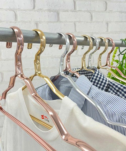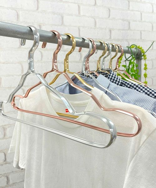 アルミニウム製の軽くて錆びにくいハンガー6本セットです。 肩の部分に溝があるのでキャミソールやタンクトップなどの衣類も滑りません。 高級感のあるカラーに洗礼されたデザインが美しく、衣類をかけるだけで、より一層衣類を引立てます。 重さは1本あたりわずか40g、と超軽量!クローゼット内の衣類の並び替えもスムーズに行えます。 服に優しく、ずり落ちにくい、おしゃれな超軽量アルミハンガーで快適に。 1本あたり重量:40g