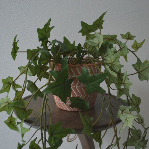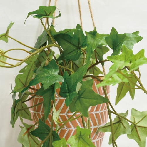 フェイクの観葉植物。 ハングタイプで、フックや天井に吊り下げできます。 時間が経っても枯れることがないため、いつでもお部屋の雰囲気をフレッシュに保てます。 気軽にグリーンを楽しみたい方はもちろん、日当たりのよくない屋内にお住まいの方や植物を育てるのが苦手な方にもおすすめです。 ハンドメイドで生産しておりますので、サイズや見た目も若干ばらつきがございます。あらかじめご了承ください。 フェイクグリーン 水やりや日当たり、風通しなどの室内環境の心配もなく、根腐れや通気不足、土の中のカビ、水のやり過ぎ、根詰まりなどが原因で枯れることもありません。 また、フェイクグリーンはインテリアアイテムとしてだけでなく、風水上でも運気を高めてくれるとされ、置き場所や飾り方を意識する方も少なくありません。 緑は「健康運を上げる」とされ、観葉植物のグリーンは空間にある負の気を吸収してくれるとも言われています。 そのため、人が集まりやすいリビングや玄関、頻繁に使用するトイレなどに置くと良いと言われています。 アイビー 【特長・概要】 ヘデラ・ヘリックス「ゴールデンチャイルド」 斑入りヘデラのなかで、流通量も多く人気の高い品種です。 緑の葉に黄色い斑が入ります。 単体ではもちろん、カラーリーフの寄せ植えなどでも楽しめますよ。 風水的にアイビーは金運アップの効果がある観葉植物といわれています。 おすすめの設置場所ははトイレやキッチンなど水回り。 陰と水の気をもっているので、悪い気も吸収してくれて金運も上がるそうですよ。