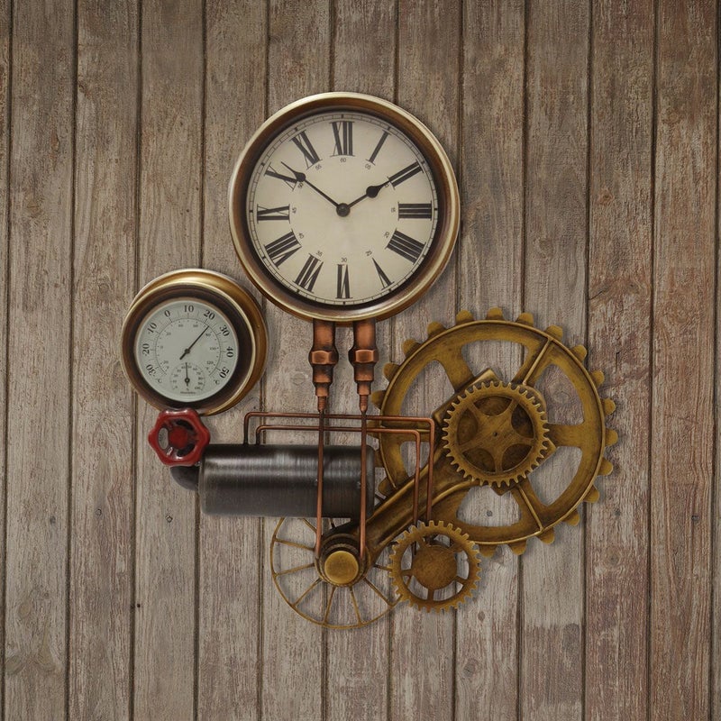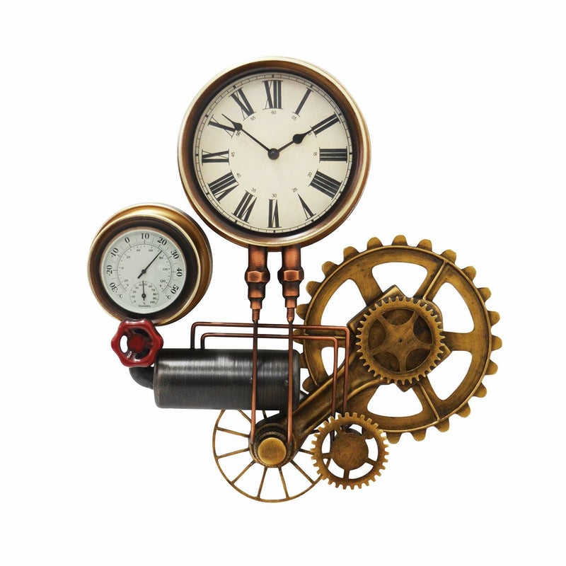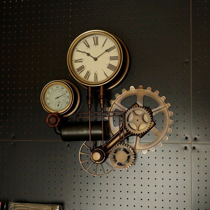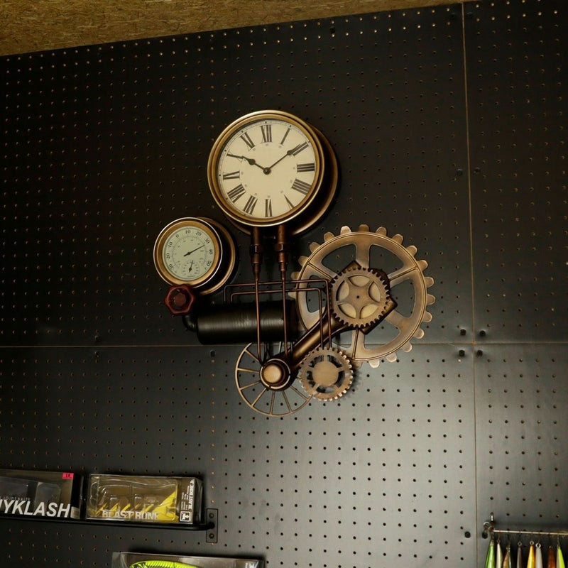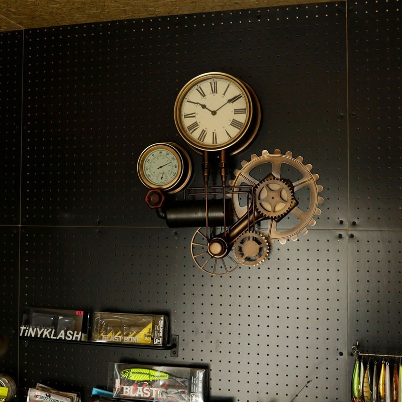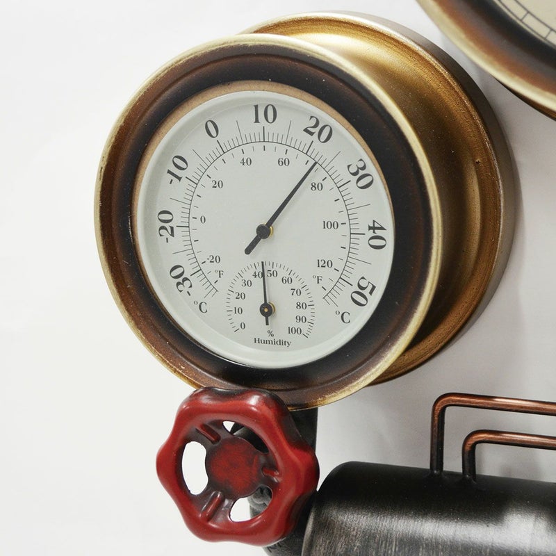 ボイラー室のスチーム管やスチームメーターなどスチームパンクなモチーフのウォールクロック。 時計のほか、温度計と湿度計が付いています。 存在感のあるデザインなので、一つあるだけでお部屋の雰囲気がレトロクラシックな印象に。 本製品は、一つずつハンドメイドで溶接、加工しております。 ヴィンテージの雰囲気を出すために、塗装ムラや細かなキズも雰囲気の一つとしております。あらかじめご了承ください。 *こちらの商品はラッピング対応不可となります。予めご了承ください。 保証期間:6ヶ月