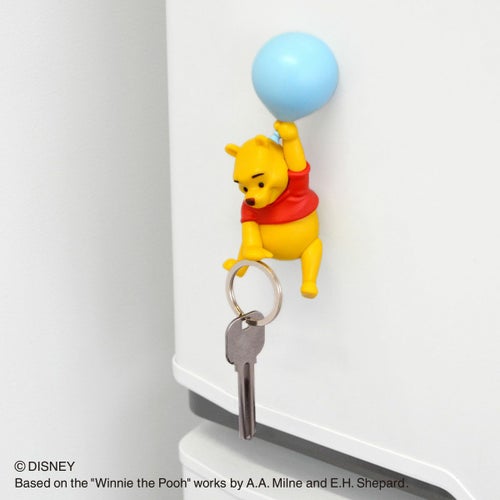 マグネットでピタッ!とくっつくフィギュア「キーキャッチャー」はあなたの鍵をピタッと持ってくれる便利で可愛いアイテム♪ 水色の風船でふわふわ浮かぶ「プーさん」をドアや冷蔵庫などにピタッと取り付ければ、 物語のワンシーンがお部屋に来てくれたみたいな気分♪ ニコニコ笑顔に癒されて、「いってきます!」と「ただいま!」がいつもより楽しくなっちゃいそう! ●背面のマグネットで金属の面にくっつきます。平らなところに設置してお使いください。 ※カギは付属しておりません。