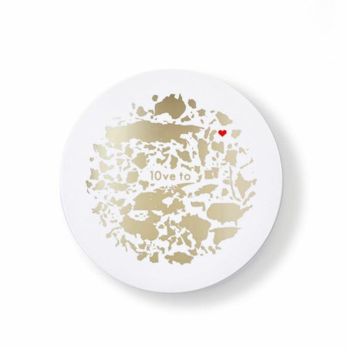 10ve to UVパウダーのコンパクトに描かれた、模様のような円形のグラフィック。実は一つひとつが世界中のすべての国や地域の形でつくられています。 それぞれの形を、地球をつくる大事なピースのように、ただ無心に一つの大きな円に並べました。 |