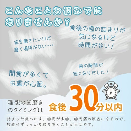 理想の歯磨きタイミングは食後30分以内と言われています。詰まった食べかす、歯垢が虫歯、歯周病の原因になるので、放置せずしっかり取り除くことが大切です。