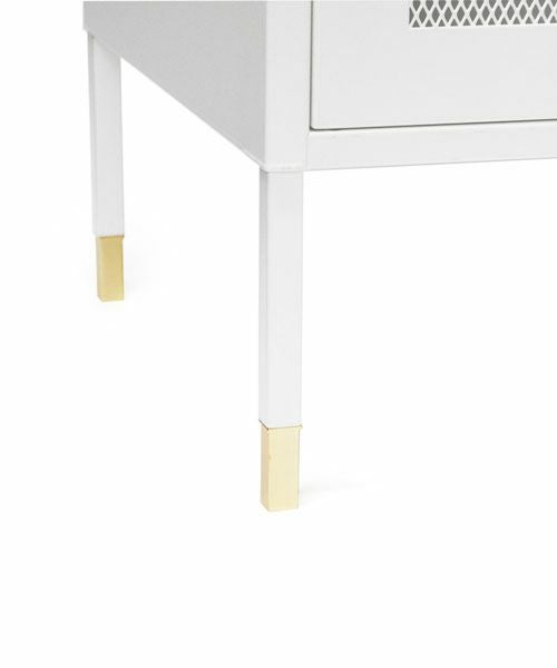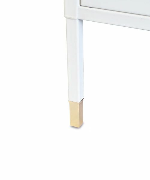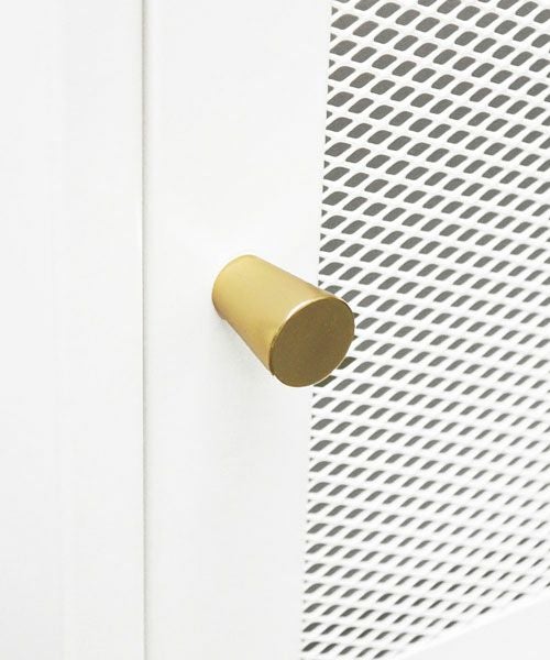 キャビネットの脚やドアの取手などに程よく艶のあるコパーのパーツがアクセント。