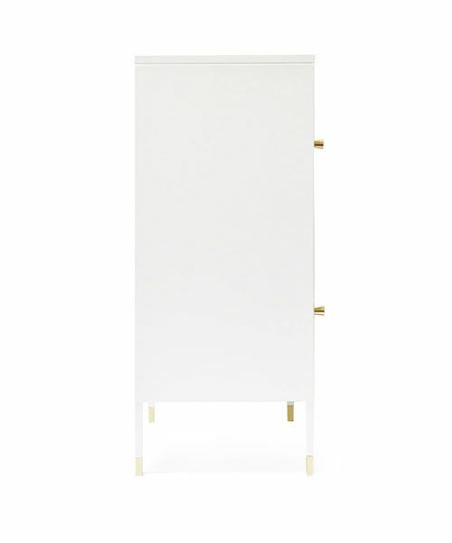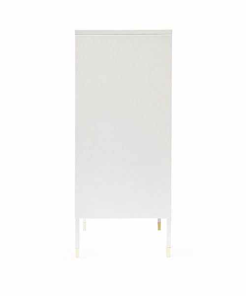 キャビネットの脚やドアの取手などに程よく艶のあるコパーのパーツがアクセント。