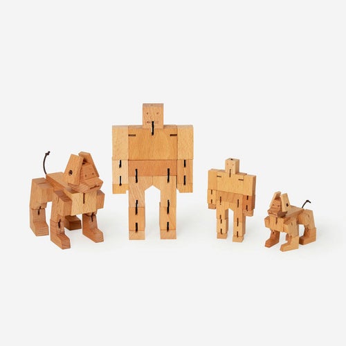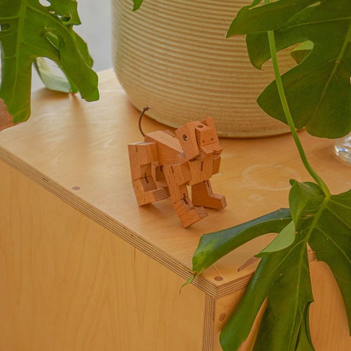 A bot’s Best Friend!(キューボットの大親友) ドックキューボットMILO(ミロ)は日本の組木文化よりインスパイアされた、犬型ロボット。 キューボットと同じように、立方体のキューブを広げるとロボットに。 ゴムのジョイントでつないだ関節をパズル感覚で自由自在に動かし、様々なポーズを愉しめます。 昼寝の時間になると、ミロは完全な立方体に戻り眠ってしてしまいます。 愛犬のように愛らしいMILO(ミロ)は、知育やインテリアとしてお楽しみいただけます。