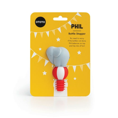 ぞうさんが玉乗りをしているようなデザインのシリコン製のボトルストッパー。 まるで瓶の上でサーカスが開催しているみたいです!