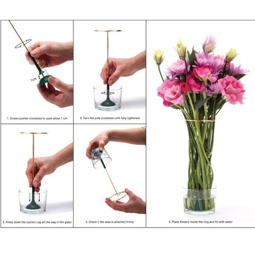 少量の花を支えて、口の空いた容器でもしっかり花を立てることができるアイデア商品!