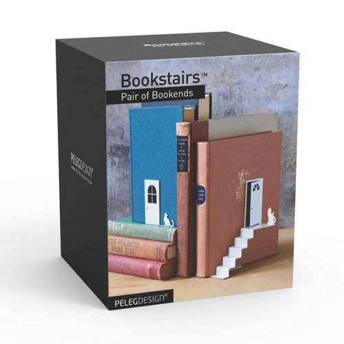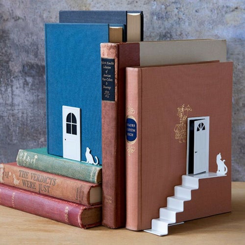 本の世界の入り口のようなデザインのブックスタンド。 ドアと階段が本の表紙の部分に来る印象的なデザインでインテリアのアクセントにぴったり! サイズ違いの二個セットです。